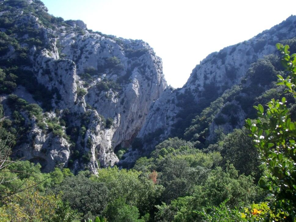 La photo montre le point de vue depuis cet endroit, sur le versant opposé, à l'Est des Gorges.