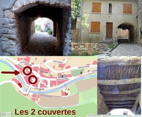 Deux ruelles piétonnes du cœur de village sont donc "couvertes". Elles sont non loin l'une de l'autre, dans la partie ouest du village. La plus visible domine un espace de pique-nique, près de la route. Ces architectures sont relativement typiques des petits ensembles villageois où l'espace foncier se trouve être rare et précieux. Remarquez le sous-plancher en bambou en levant les yeux !